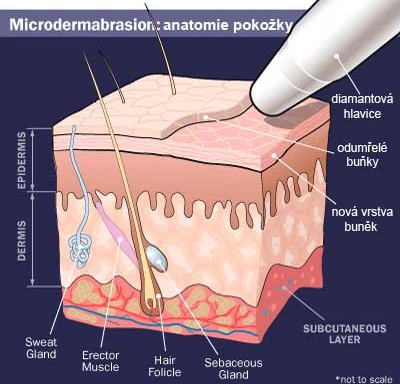 Mikrodermabraze je jedním z kosmetických zákroků, kterým si můžete naprosto bezbolestně nechat vyhladit, a tím pádem i omladit vaši pleť. Mikrodermabraze funguje na bázi mechanického peelingu a nahrazuje starší metodu dermabraze. Broušení pleti se provádí speciálními hlavicemi, které mají na konci diamanty různých hrubostí. Povrch obličeje je jemně „zbroušen“ a všechny odumřelé buňky jsou spolu s vrchní částí kůže odsáty. Po celkové proceduře jsou na obličej naneseny kosmetické přípravky, které se snáze vstřebají do pokožky a mohou jí tak rychleji dodat potřebné živiny. V průběhu aplikace je také příznivě stimulována produkce kožního kolagenu, rozproudí se lymfatický systém, čistí se ucpané póry a zvyšuje se celkové prokrvení kůže.